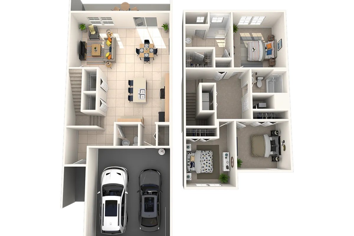 Disfruta de townhomes de 3 y 4 habitaciones con diseños amplios, modernos y funcionales, desde 1,673 hasta más de 2,000 pies cuadrados. Cada unidad ofrece la comodidad de una casa con entrada privada, garaje para dos autos y distribución inteligente para mayor privacidad y confort.